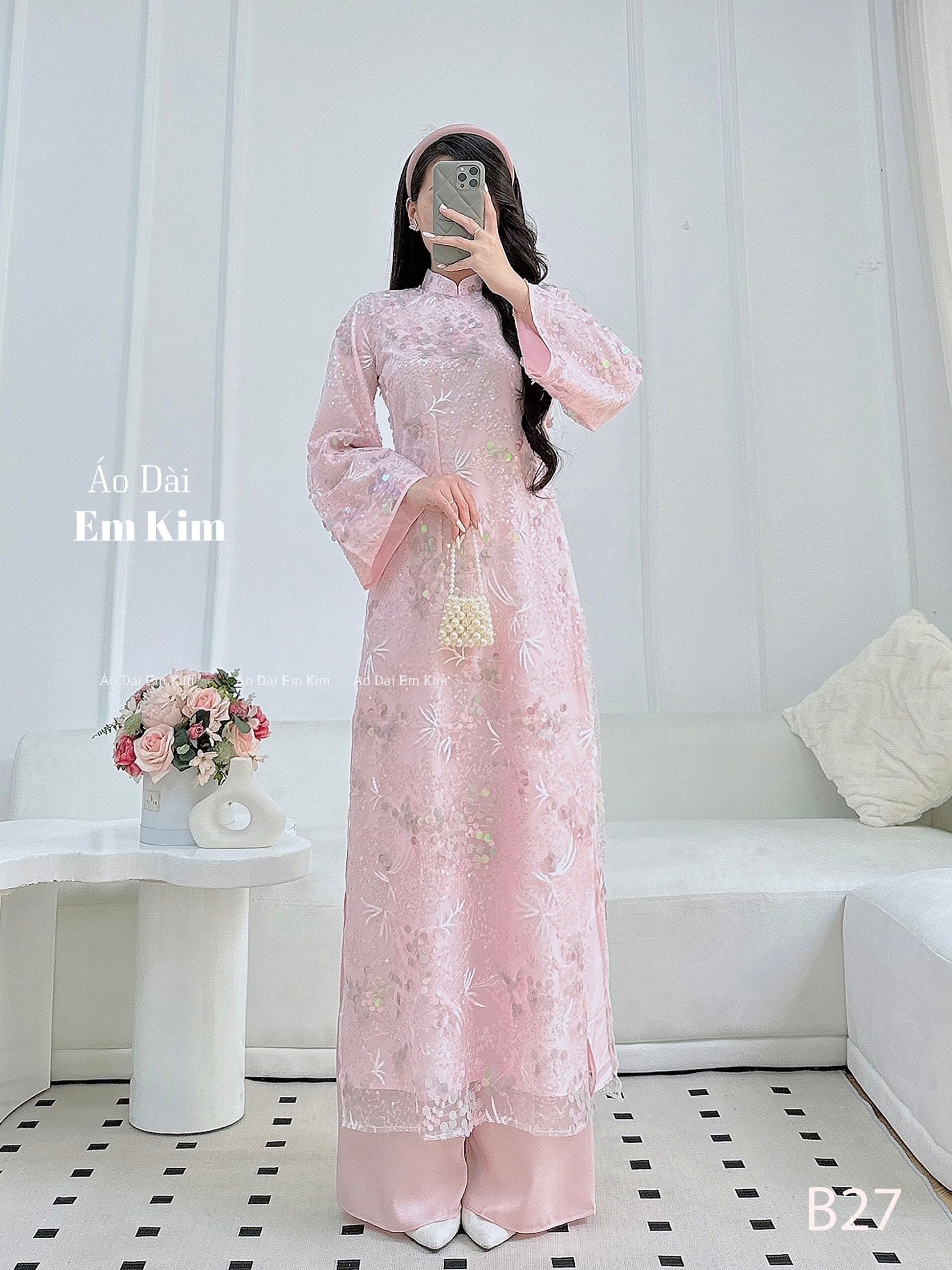 Kim sa Bling bling Pink ao Dai| B27