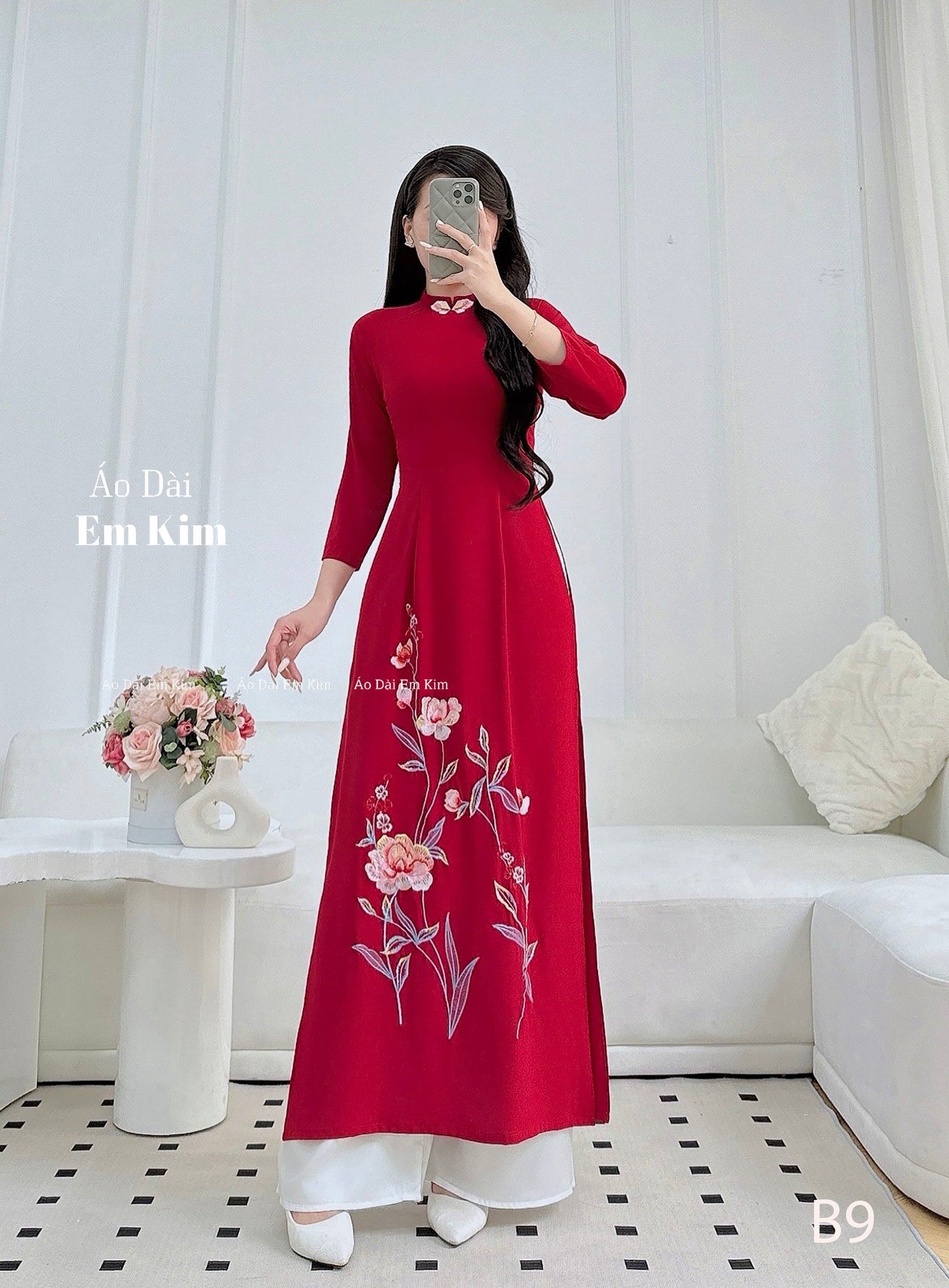 Embroidery flowers Red Ao Dai B9