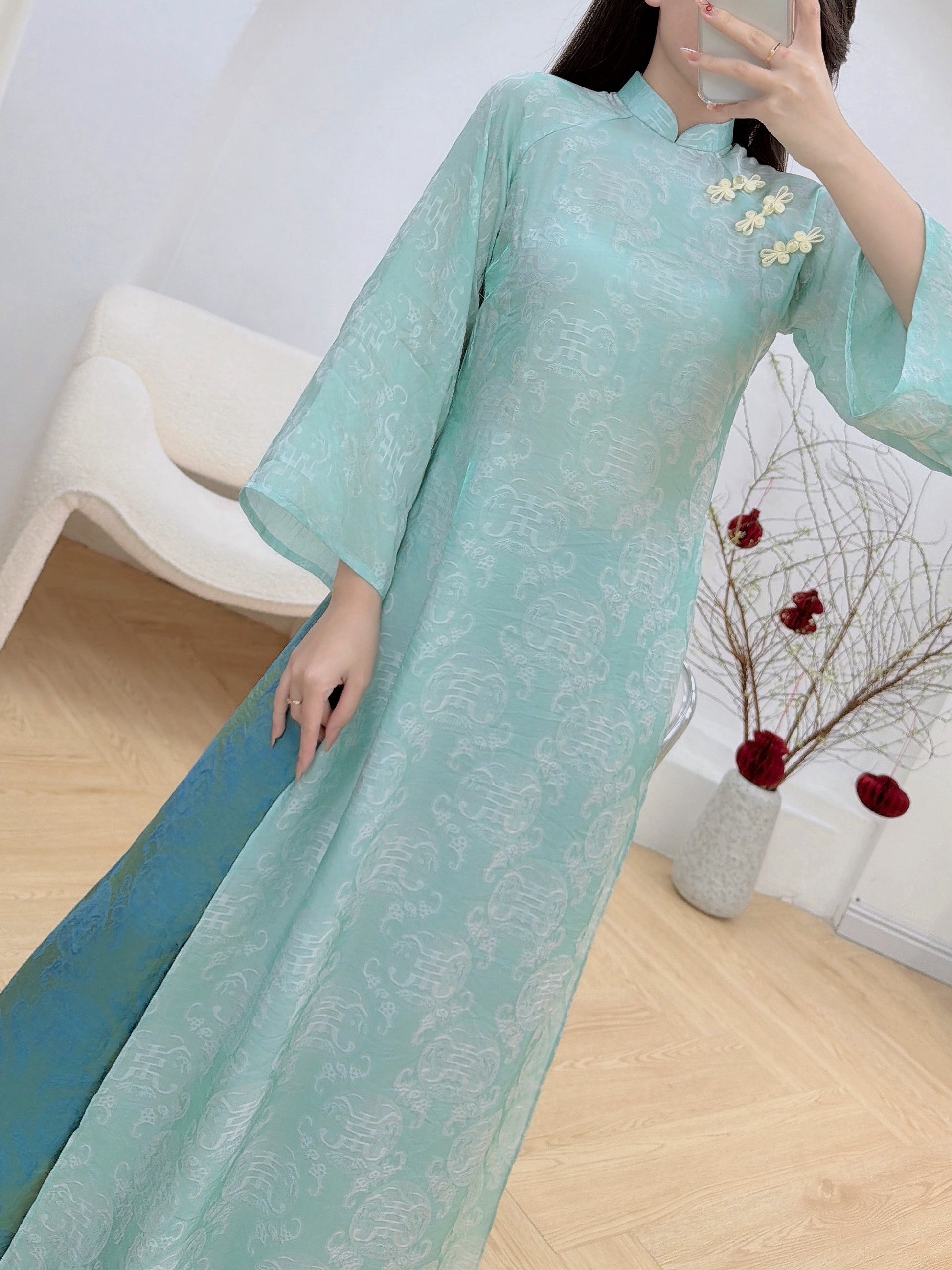 Gấm Thọ óng MINT with gấm pants B48