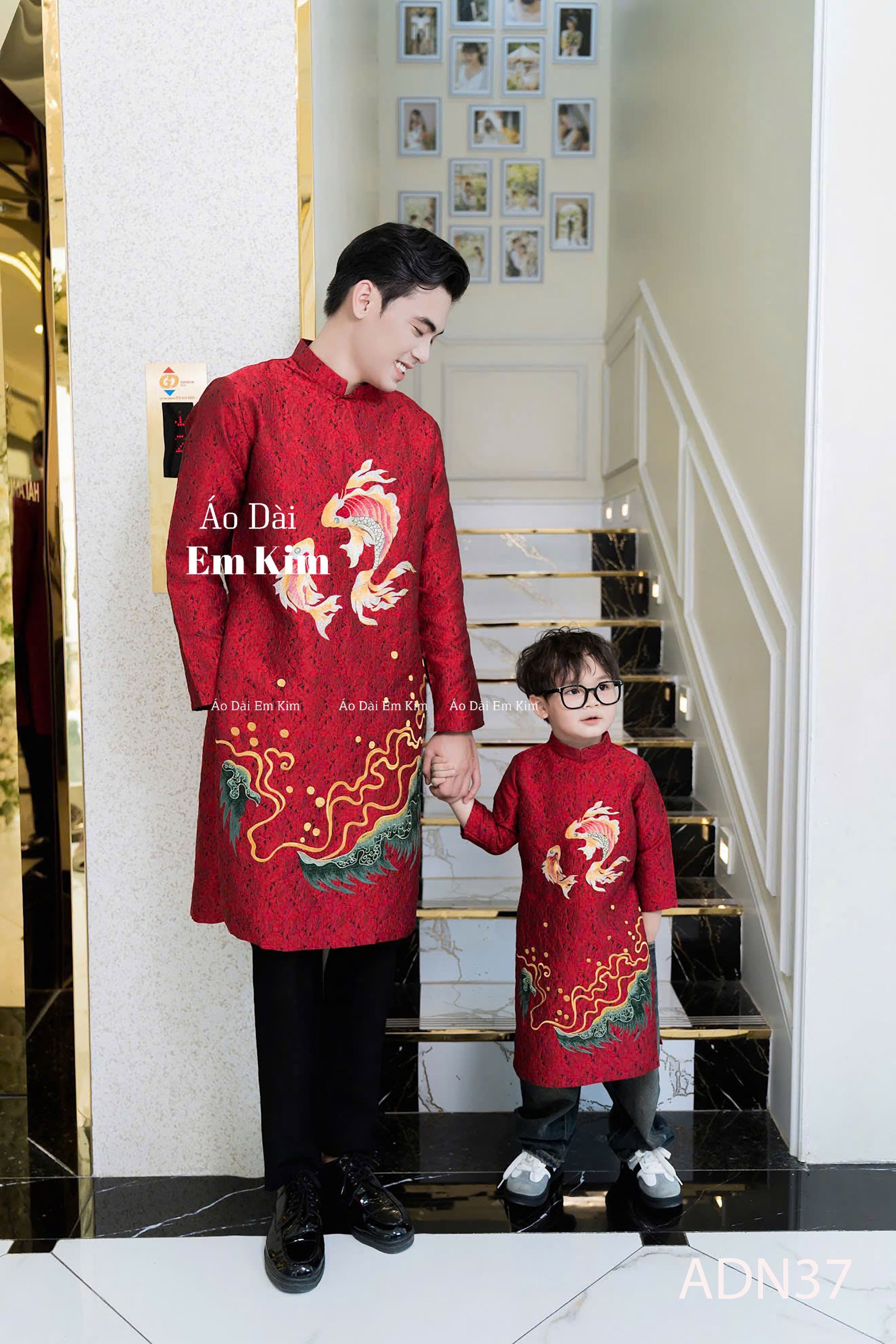 Red Embroidery Dad and Boy Ao dai NO PANTS| Ao Dai Kids| Pre-made Traditional Vietnamese Ao Dai | Lunar New Year | Ao Dai for Boy |ADN37