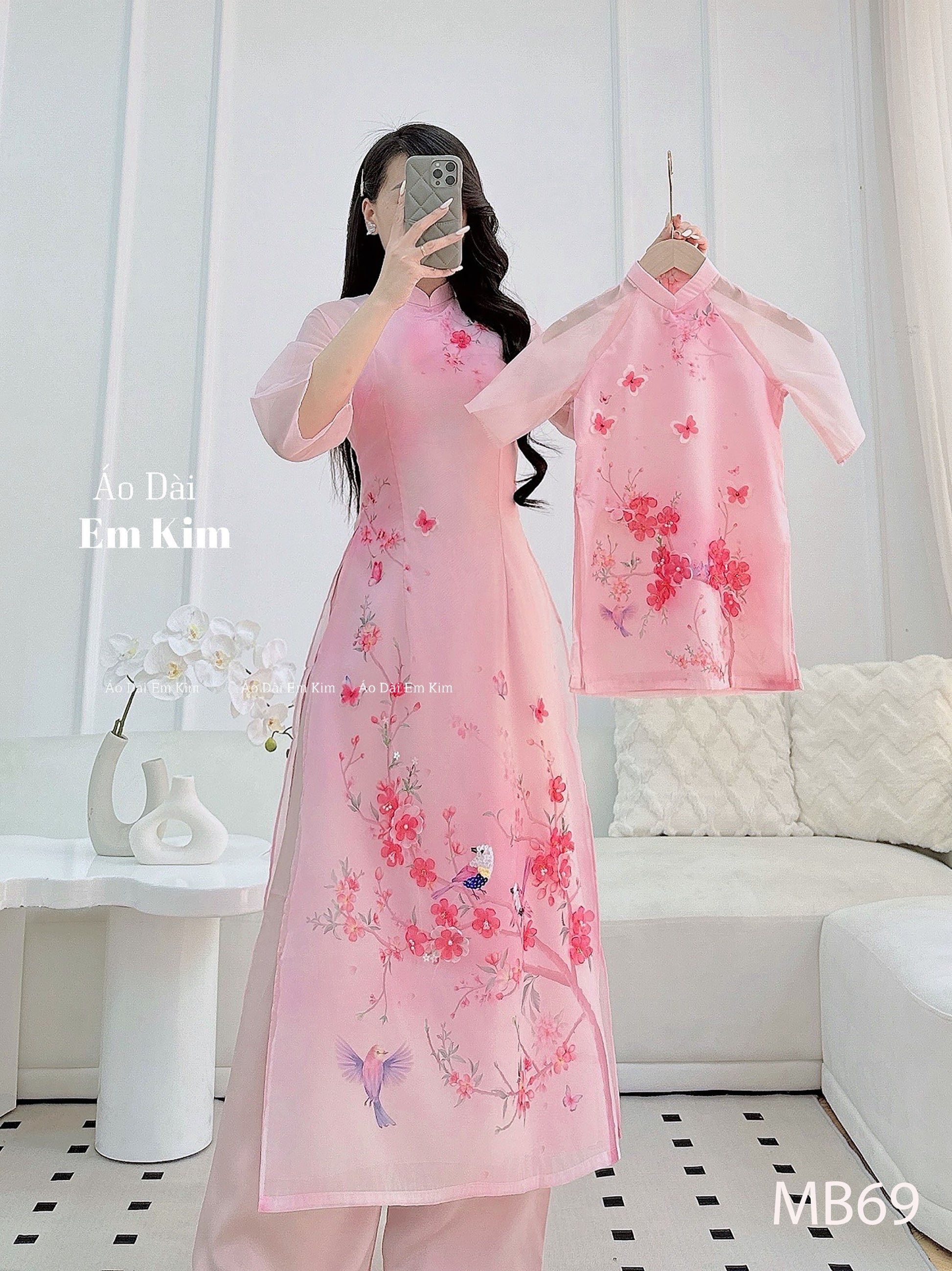 Pink floral Ao Dai |Bảng mẫu mẹ và bé| Ao Dai Me va Be modern silk organza| | Lunar New Year| MB69